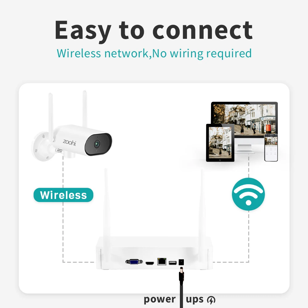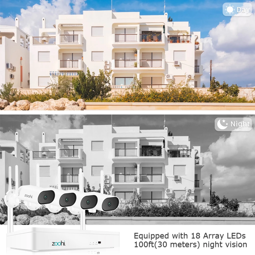 Zoohi 3MP Security Camera System HD Horizontally Rotatable Wifi Camera Sound Record Night Vision Outdoor Surveillance System