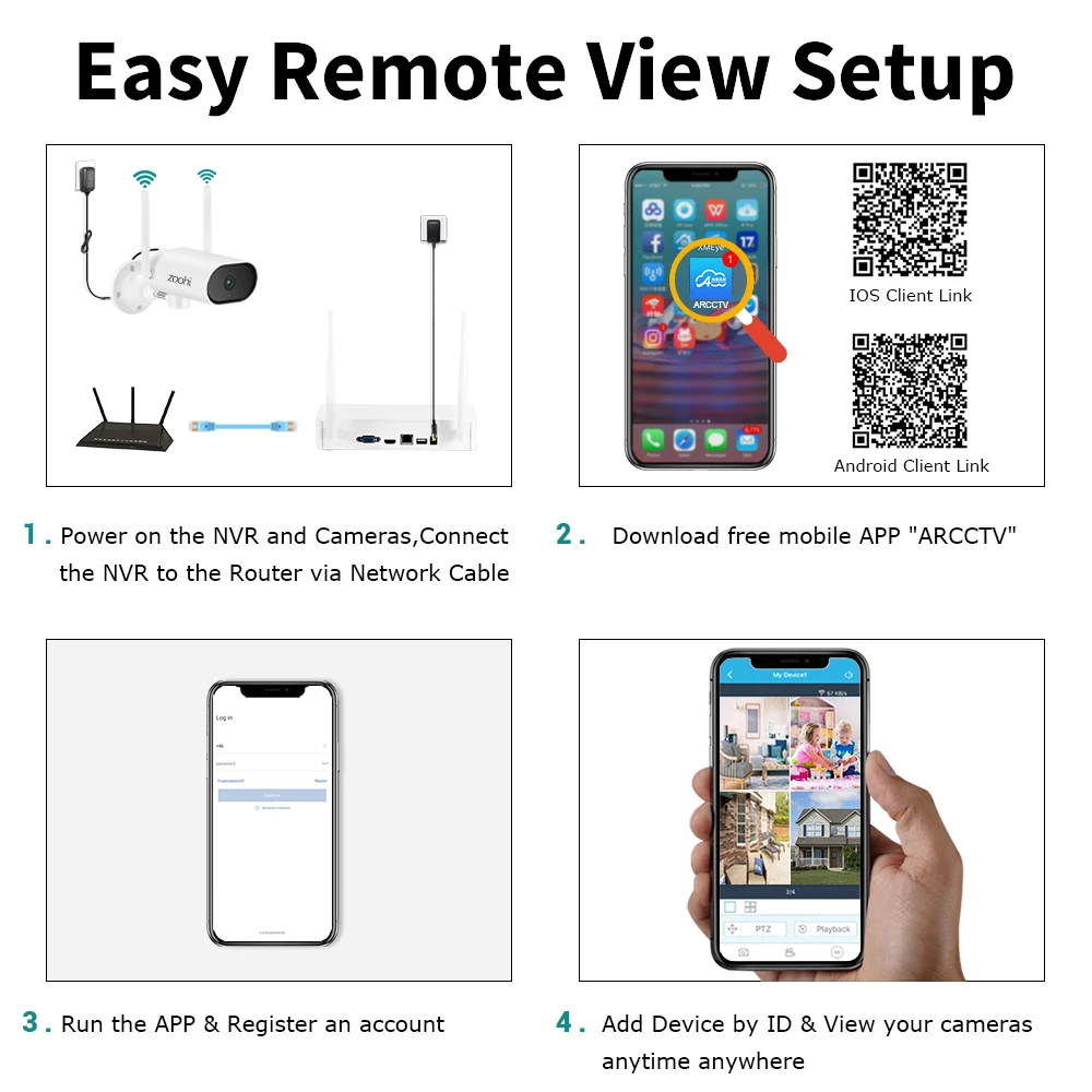 Enjoy all the advantages of wireless security system, such as flexible mounting positions, easier wiring works and less damages to your decoration. It can be put anywhere, especially for detached buildings with nearby power sources.NVR Features: