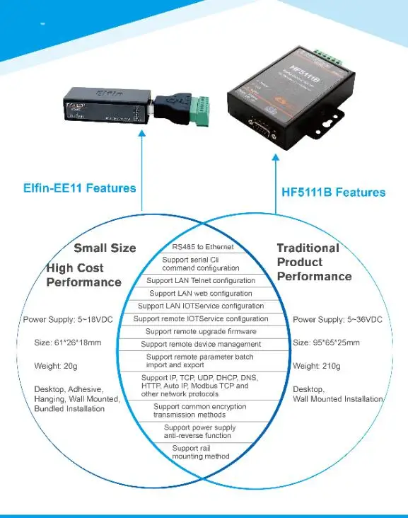 Elfin-EE11 series support RS485 to Ethernet