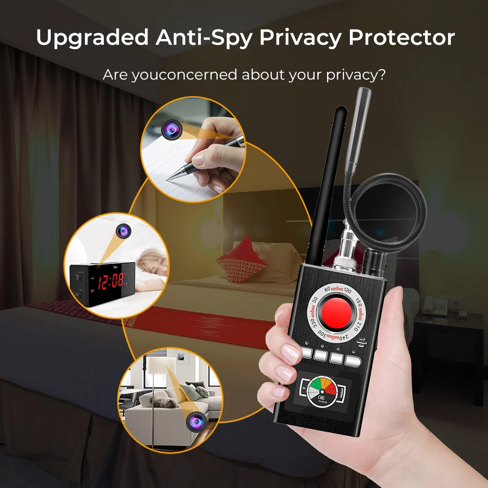 【5 in 1 Upgraded Bug detector】 kunkin upgraded hidden camera detector is equipped with military quality ultra sensitive chips ,Metal&alloy body and Larger LED Signal display interface.It is study yet light weight Bug detector and equipped with unique auto alarm mode, in this mode ,any suspicious signal would be automatically captured.It enable us safeguard our privacy on a new level.【Intelligent And Automatic Detection】 just press the smart detection switch, kunkin hidden camera detector enters the intelligent search state, and it will automatically identify, classify and record the danger signal with intensity above level 8 every minute,once it detect suspicious signal over five times, it would beep and alarm which indicate the presence of a dangerous signal nearby【Professional privacy protection】TI-K88 bug Detector is an effective camera detector that helps you detect various signal fluctuations in the surrounding environment. It detect and locate various signal transmission devices such as hidden&spy cameras, GPS trackers and bug through wireless and magnetic signal fluctuations . Imported ultra-high sensitivity chips and exquisite designed to protect your privacy【Larger LED Signal display interface】 TI-K88 anti spy detector adopts the most intelligent LED display and visualize signal strength. It have four different color.in display interface : white zone means no signals ,green zone indicate growing suspicious signals strength.yellow zone show stronger signal strength is detected .and red zone imply suspicious device is located.this interface beneficial to better detect and find signal source.【Professional Tech Support And Lifetime Guarantee】If you have any problems during operation ,you can contact us directly, we have a professional technical team to help you solve any problems, you could choose us with no worries