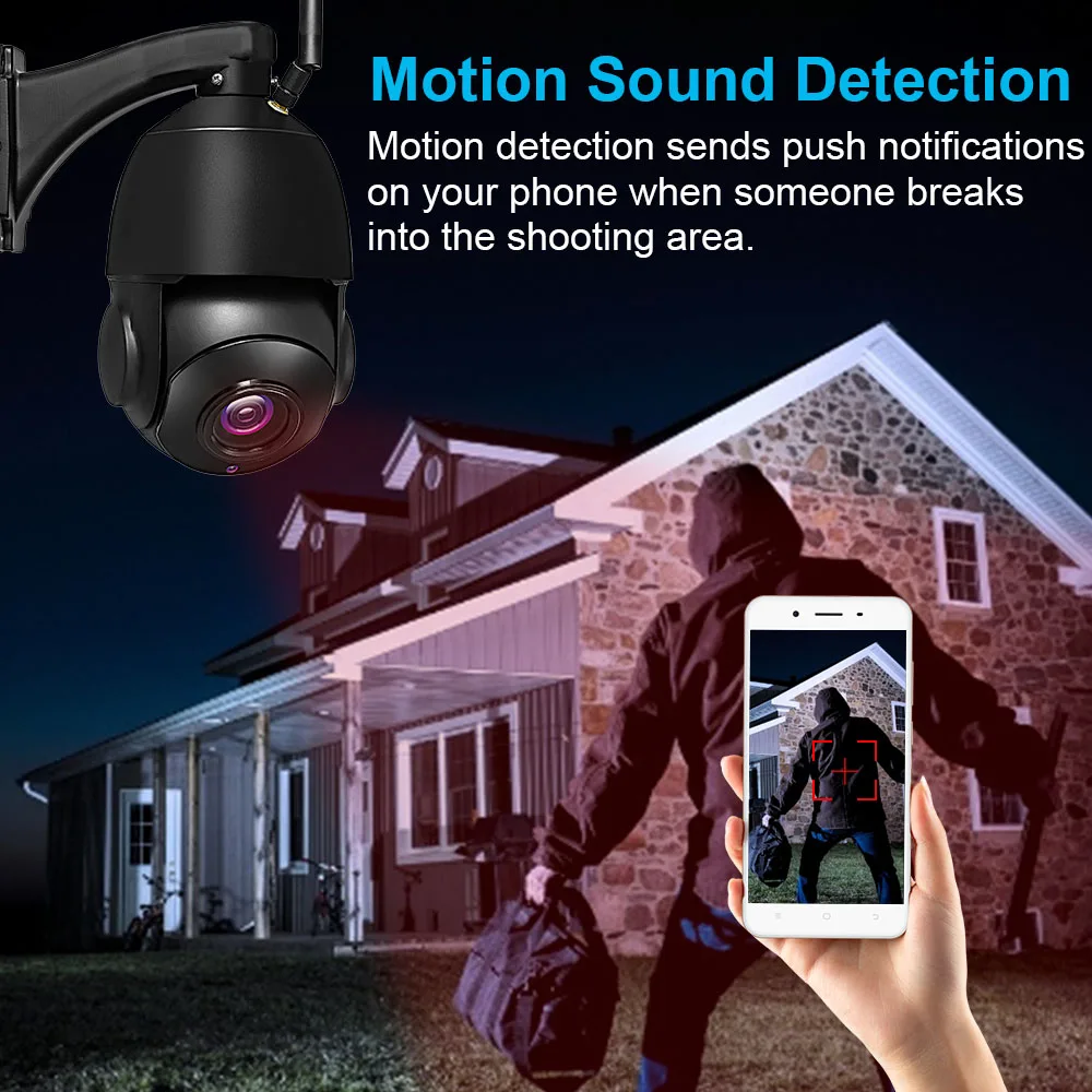 Automatically detect moving objects and trigger alerts when dangers occur. Protect your home and business effectively from burglars, intruders and break-ins. When invasion happens without your permission, this camera will send alerts in real time.